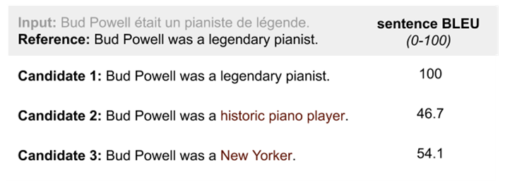 - naive recall: candidate 2보다 candidate 1이 좋은 번역으로 계산함