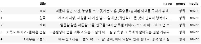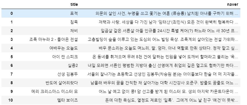 # 네이버 영화 시놉시스를 저장할 df 만들기