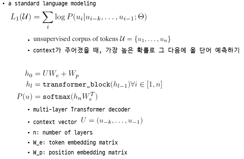 • generative pre-training (unlabeled text) + discriminative fine-tuning (labeled text)