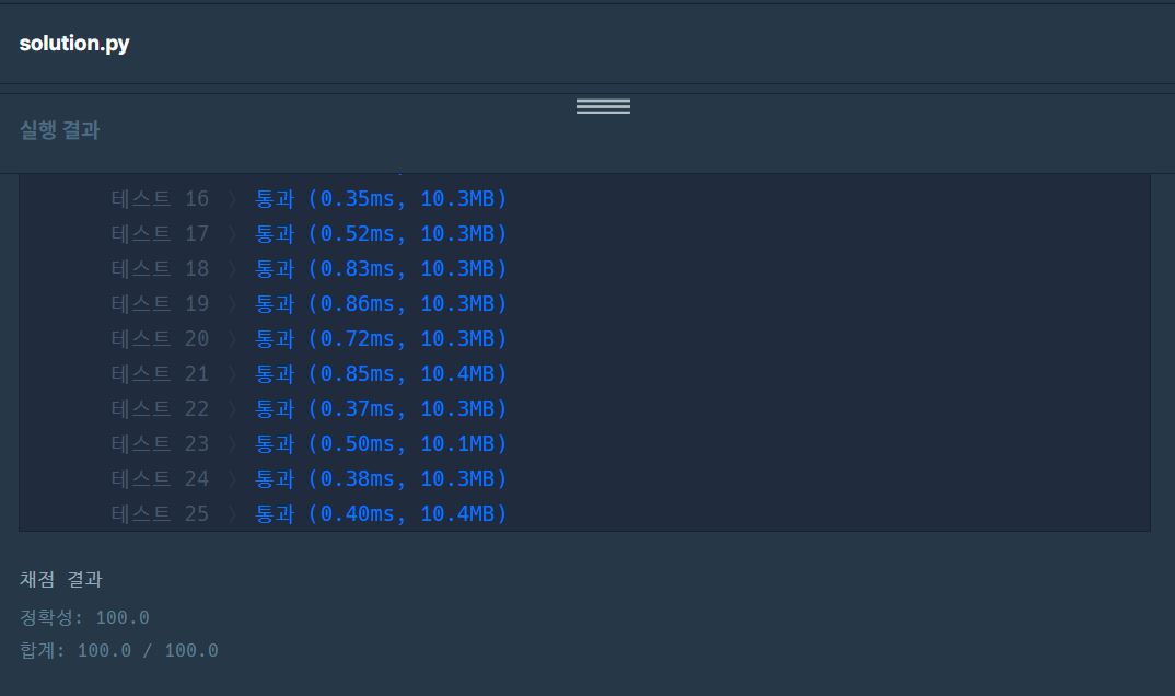 solution 함수는 문제에 주어진 설명에 따라 구현했습니다.