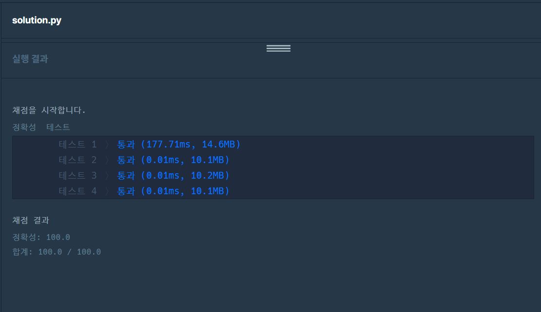 이후 solution 함수에서 이 candidates를 받고, 이를 알파벳 순으로 정렬해 첫번째 값을 반환합니다.
