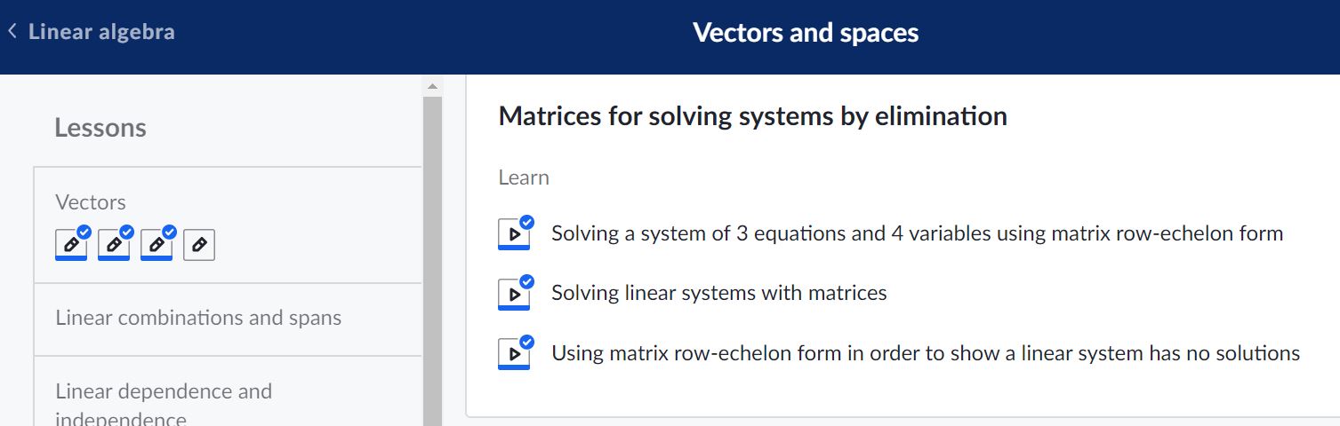https://www.khanacademy.org/math/linear-algebra/vectors-and-spaces#matrices-elimination