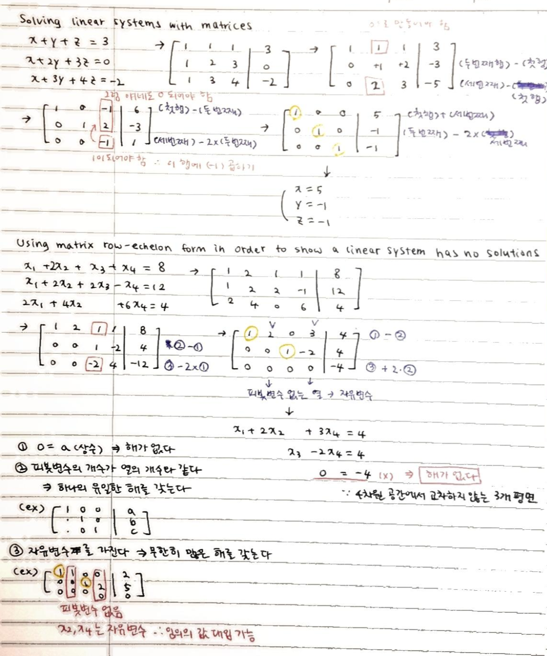 3) 자유변수를 갖는다 : 무한히 많은 해를 갖는다