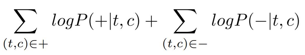 목표는 positive example에서 나온 것을 +로, negative example에서 나온 것을 -로 분류하는 것. 따라서 아래 수식의 값을 최대화해야 한다