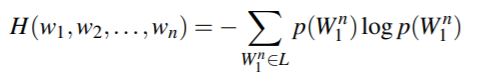 이를 단어의 개수 n으로 나누면 per-word entropy, 즉 entropy rate가 된다.