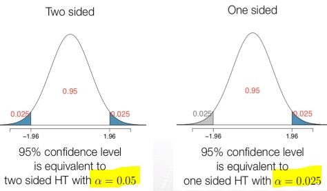 - 같은 유의수준, 검정통계량을 사용하면 단측검정에선 기각이 되는데 양측검정에선 기각이 되지 않는 경우도 있다