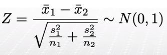 1) 두 집단의 표본의 크기가 각각 30이상일 경우 : CLT를 적용할 다른 조건을 확인한 후 test statistic이 정규분포를 따른다는 가설하에 가설검정을 한다