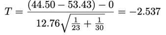 - 자유도는 23 + 30 -2 = 51이며, p-value는