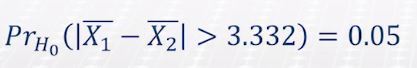 P ( 검정통계량 > 1.96 ) = P ( 두 집단 평균의 차이 ÷ SE > 1.96 ) = P ( 두 집단 평균의 차이 > 1.96 * SE ) = P ( 두 집단 평균의 차이 > 3.332)