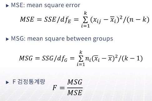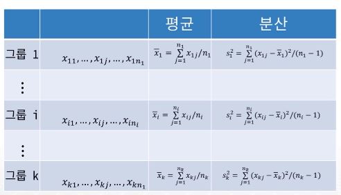 - 그룹 간의 변동이 그룹내의 변동보다 상대적으로 커야 그룹 간 평균의 차이를 탐지할 수 있다