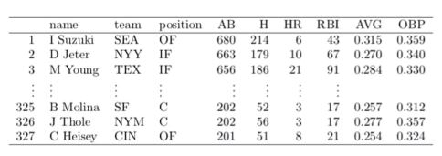 ( 단,2010년도 총 200 타수 이상을 기록한 327명의 선수를 대상으로 타격기록을 조사하였다.)
