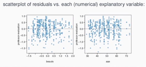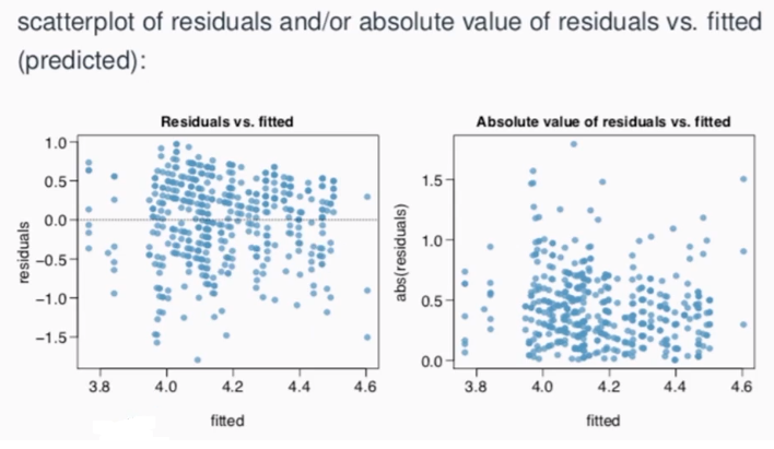 - 다중회귀분석에서는 y축에 잔차, x축에 y의 추정치 (= 여러 x들의 선형결합) 그려서 등분산성 확인함