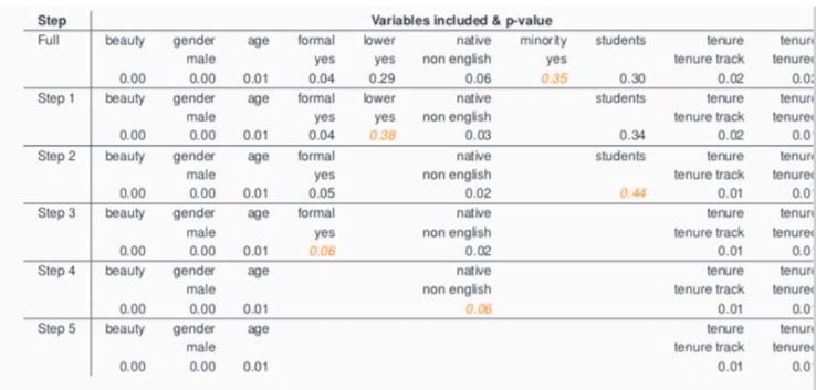 A. No. 변수 하나 뺄 때마다 p-value 달라짐. Colinearity가 존재하기 때문.