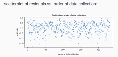 - 다중회귀분석에서는 y축에 잔차, x축에 y의 추정치 (= 여러 x들의 선형결합) 그려서 등분산성 확인함
