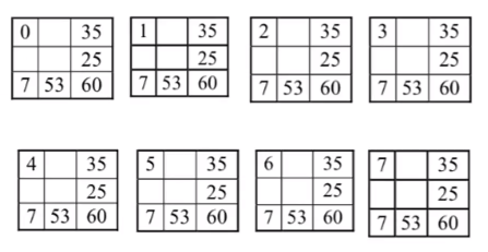 - 열과 행의 합이 주어졌다면, 우리가 값을 선택할 수 있는 칸은 하나뿐(나머지는 합에 의해 자동으로 정해짐). 그 값도 0-7까지만 가능