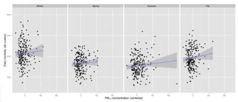 - 그러나 계절별로 나누면 미세먼지가 많을수록 사망률이 높아진다