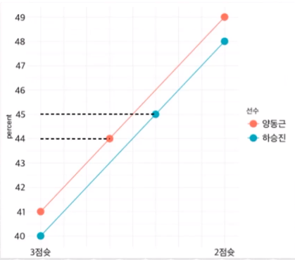 - 3점슛과 2점슛을 던지는 비율이 다르기 때문에 심슨의 역설이 나타난다