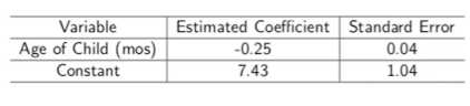 - 기울기가 음수이므로 유아의 나이와 모유수유는 음의 관련성이 있는 것을 알 수 있다
