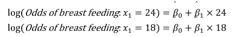 - 6개월 차이가 나는 두 그룹을 비교하자. 즉 24개월된 유아와 18개월된 유아를 비교할 때 모유수유의 오즈비 추정치는?
