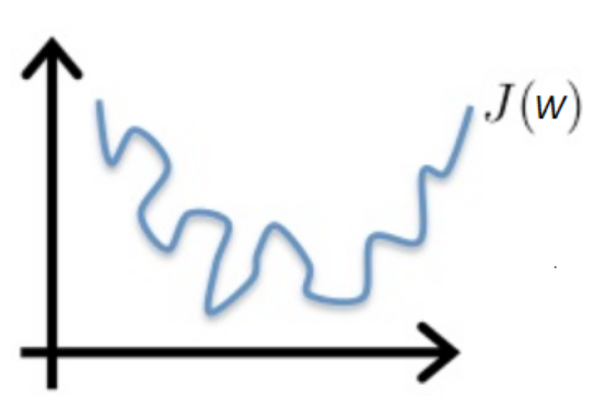 - 이 함수의 cost function을 Linear Regression과 같게 설정하면 매끈(convex)하지 않아 global minimum 찾기 어려움