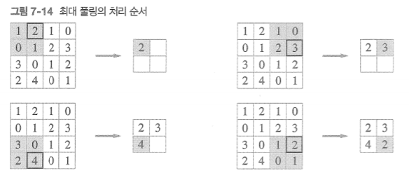 - Pooling 계층은 학습해야 할 매개변수가 없다 (영역 안의 최댓값 혹은 평균을 취함)