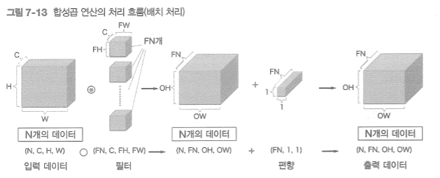 - 패딩(padding) : 출력 크기를 조정하기 위해 입력 데이터 주위에 0을 채움