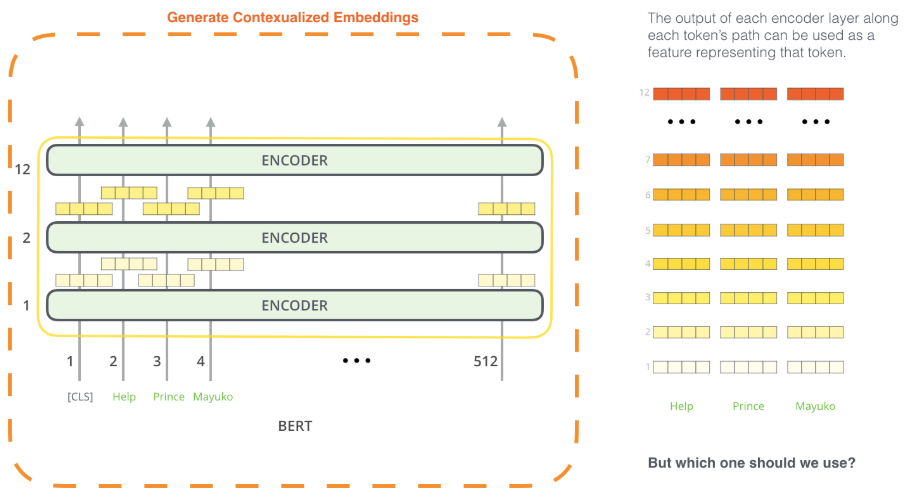 - 각 Encoder의 output을 모두 그 단어의 embedding으로 사용할 수 있다