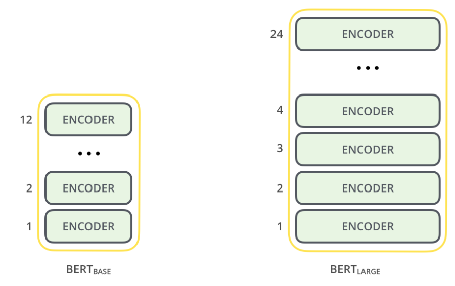 - 두 종류 (1) BERT_BASE (2) BERT_LARGE (크기 차이)
