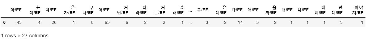 이젠 각 발화에 사용된 종결어미/선어말어미의 빈도를 dataframe으로 만들 예정