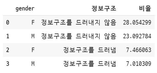 - 여자가 전략적 정보구조를, 남자가 규범적 전략구조를 더 많이 사용한다는 건 p값 < 0.1, 통계적으로 유의미하게 나타났다