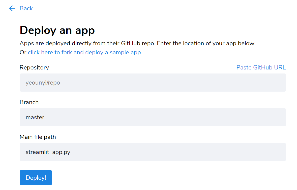 Streamlit 웹사이트 메인 페이지. "The fastest way" ?? 인정인정