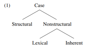 Lexical case: internal argument (e.g. theme), lexical head(V,P)에게 격 받음