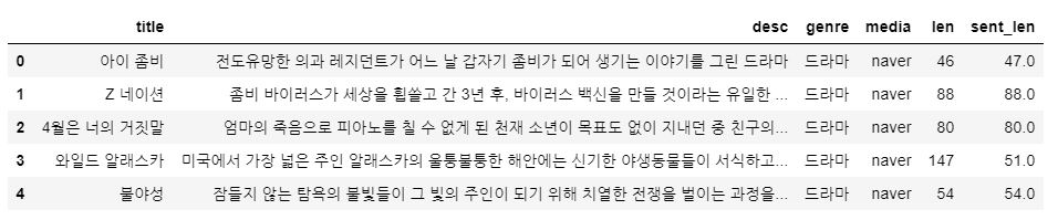 # df.iloc[i,4]은 len (시놉시스 전체 길이 칼럼)