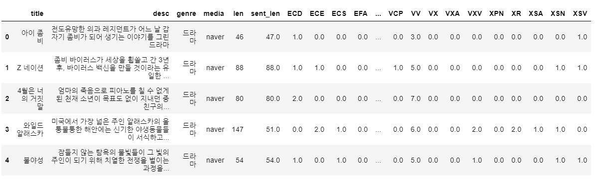 # 이전 시놉시스 품사 분석 결과와 합치기