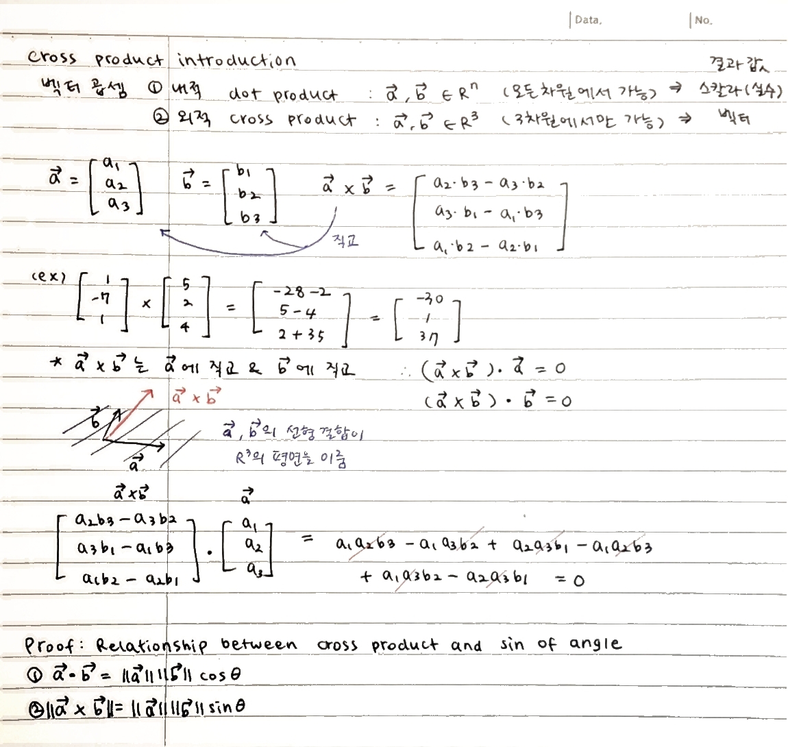 Linear Algebra > Vectors and Spaces > Vector dot and cross products 부분을 정리한 것.