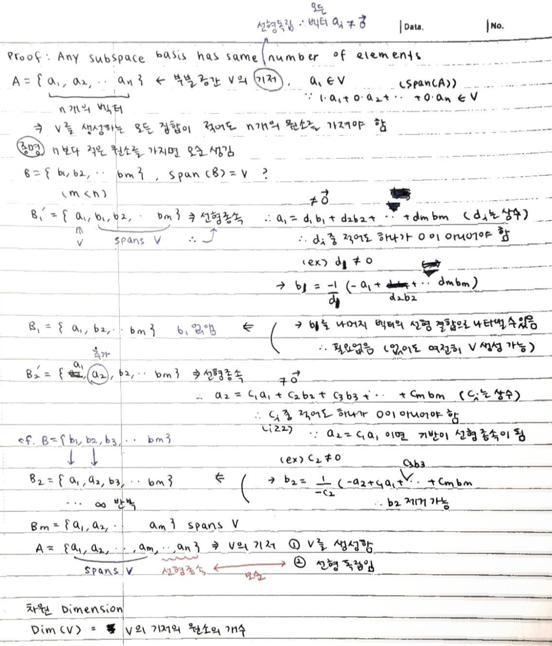 Dim(V) = V의 기저의 원소의 개수