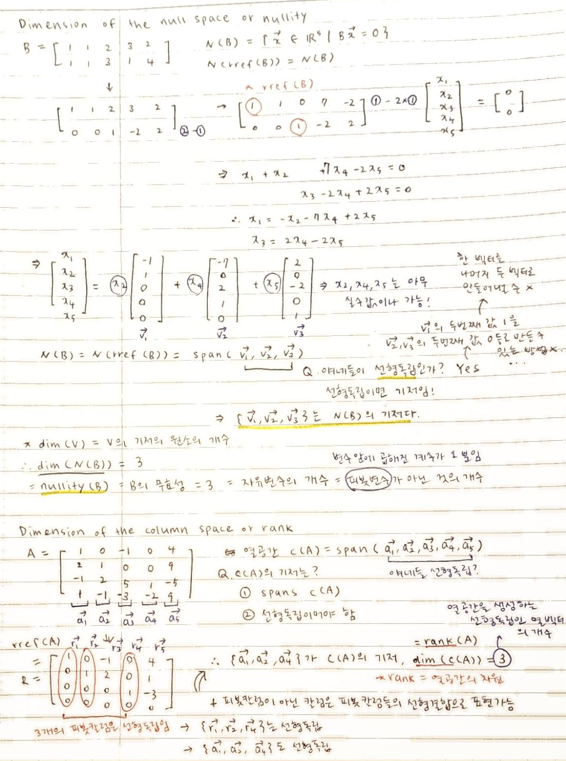 dim(N(B)) = 영공간의 차원 = nullity(B) = 행렬 B의 무효성 = 자유변수의 개수