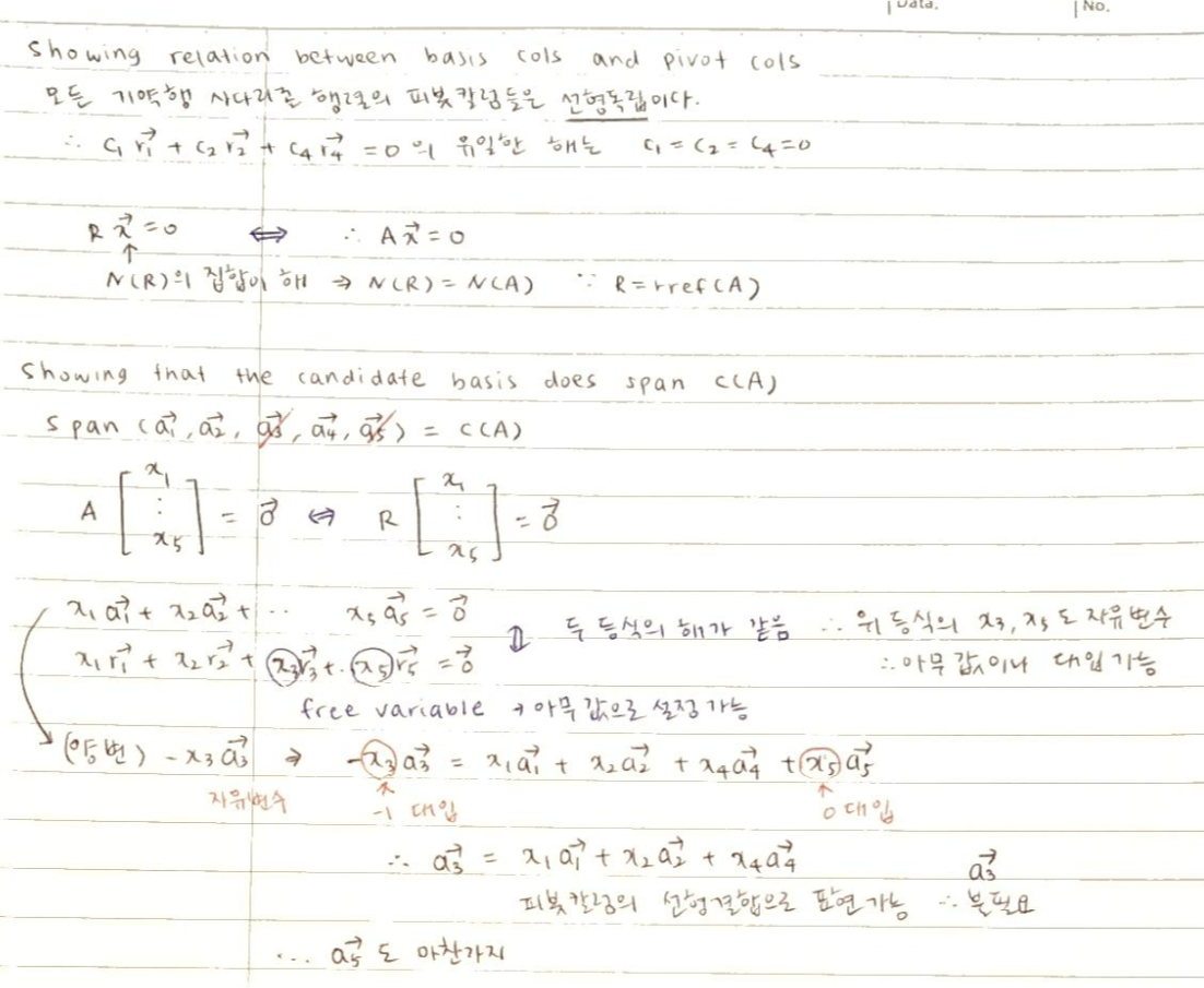 rref(A)의 피봇칼럼은 ① 서로 선형독립이며 ② 열공간을 생성(span)한다