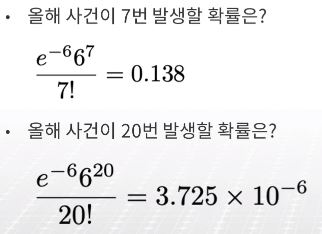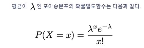 - 이와 같이 드문 현상의 발생 횟수를 나타내는 확률분포를 포아송분포라고 한다.