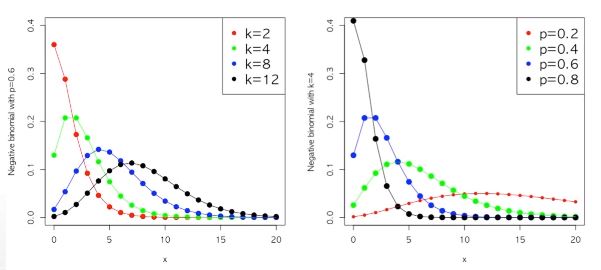 따라서 "음이항분포"라는 이름 (이항분포에 -1 붙은 것!)