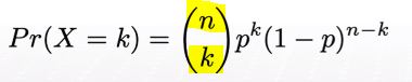 - 이처럼 n개의 베르누이 시행에서 k개의 성공횟수를 나타내는 확률변수의 분포를 이항분포라고 한다
