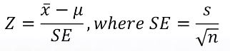 - 평균의 값에 관한 가설검정에서 검정통계량 (표본평균 표준화)