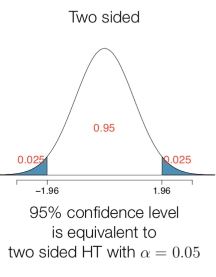- 양측 검정에선 가설검정과 신뢰구간은 같은 통계적 분석 방법으로 고려할 수 있다