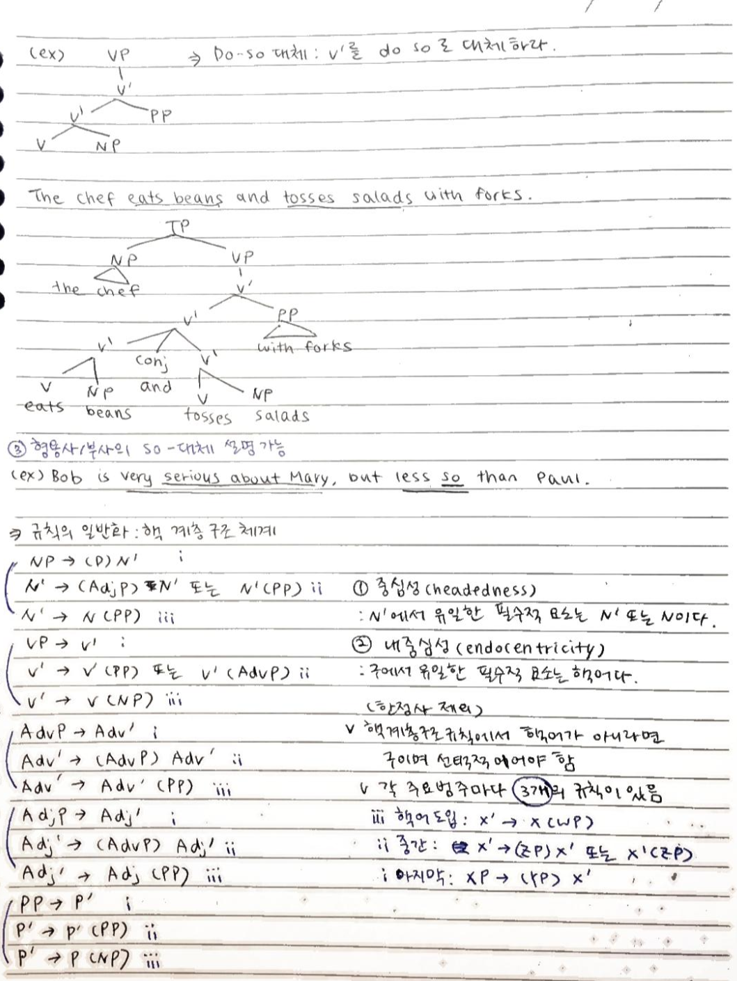 통사론(Andrew Carnie) : 제 2부 기저부 (X'이론, X'이론의 기능범주로의 확장, X'이론의 제약_어휘부)