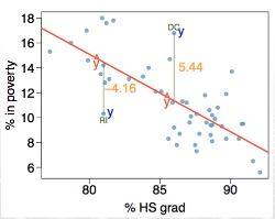 - 빈곤율과 고교졸업률의 예제에서 b0 = 11.35 - (-0.62)*86.01 = 64.68