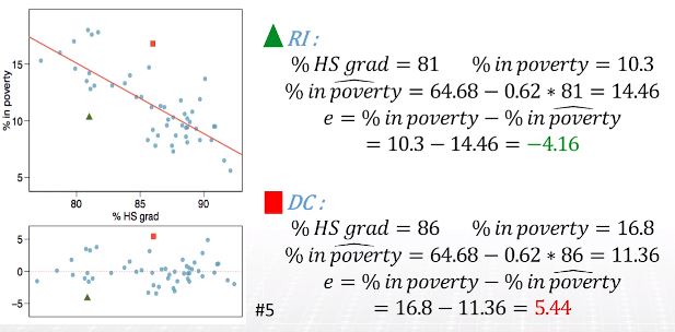 고교졸업률과 빈곤률 예제에서 R = -0.62, R^2 = 0.38