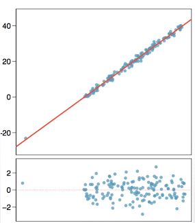 - 관계의 선형 여부 파악 방법 : Check using a scatterplot of the data, or a residuals plot