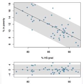 - Slope : 평균적으로 서부 지역 주의 빈곤율이 동부지역 주에 비해서 0.38% 높다 (설명변수에 1을 넣어 계산)